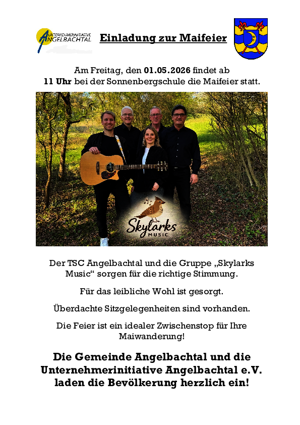 Am Freitag, den 01.05.2026 findet ab 11 Uhr bei der Sonnenbergschule die Maifeier statt.